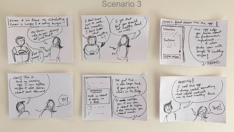 Storyboarding helped predict and explore the UX and user journey with the product.